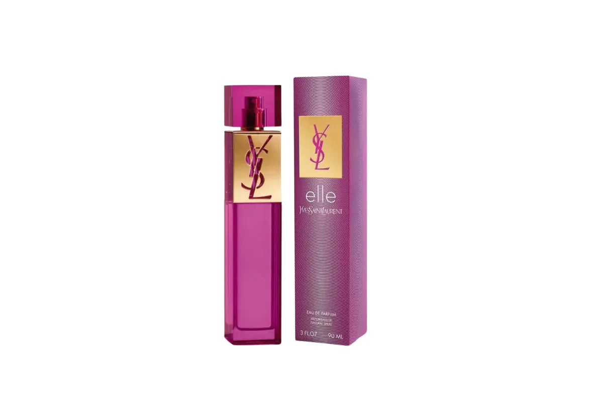 Elle de Yves Saint Laurent es una fragancia de la familia olfativa Almizcle Floral Amaderado para Mujeres. Elle se lanzó en 2007. Elle fue creada por Jacques Cavallier Belletrud y Olivier Cresp. Las Notas de Salida son lichi, peonía y limón de Amalfi (lima de Amalfi); las Notas de Corazón son pimienta rosa, rosa, jazmín y fresia; las Notas de Fondo son pachulí, vetiver, cedro y almizcle ambreta.